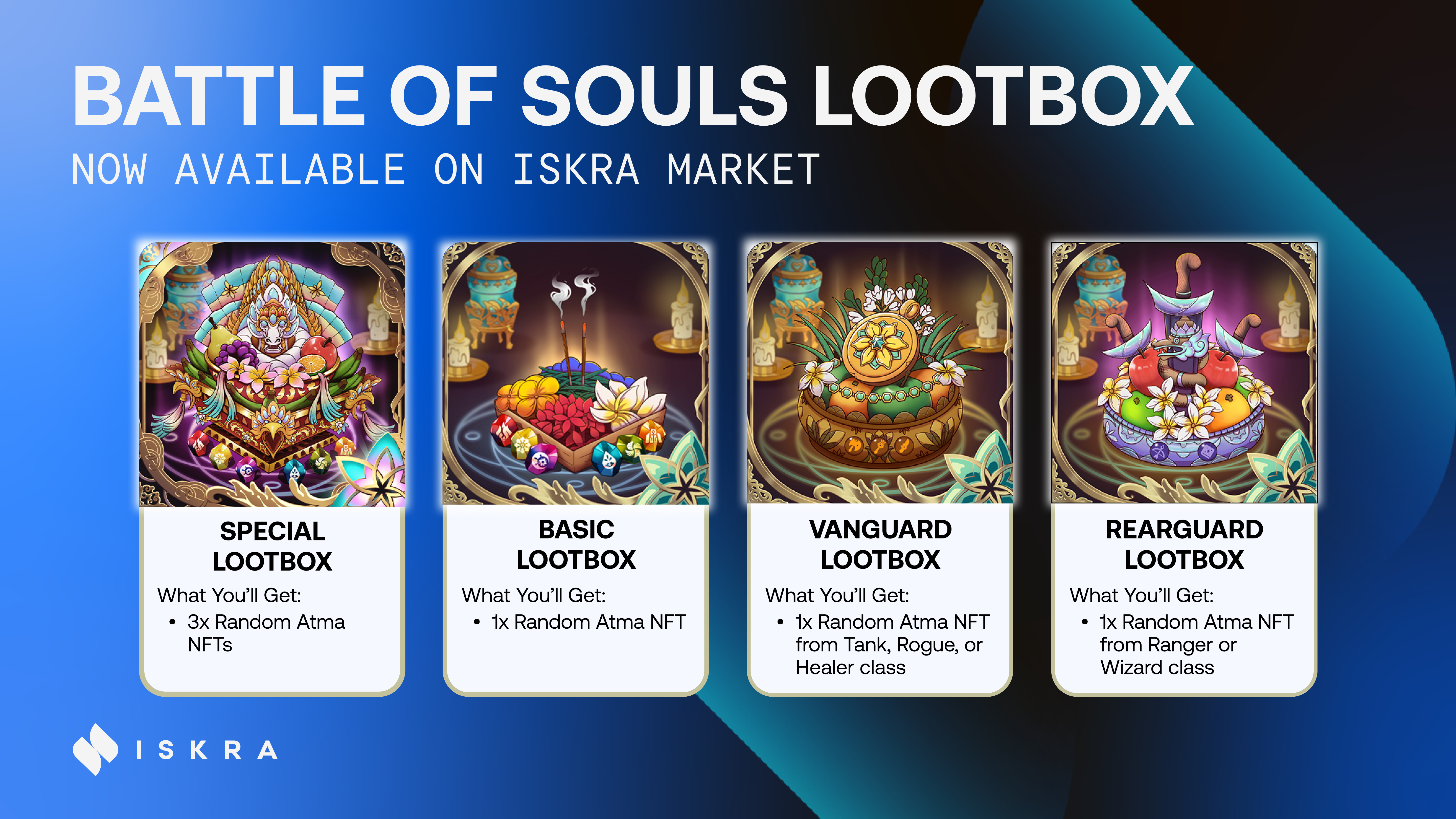 Each Lootbox contains a season-exclusive Atma NFT with unique abilities to help you navigate the mythical world of Battle of Souls. Collect and train them to build your best battle squad. Get them here.